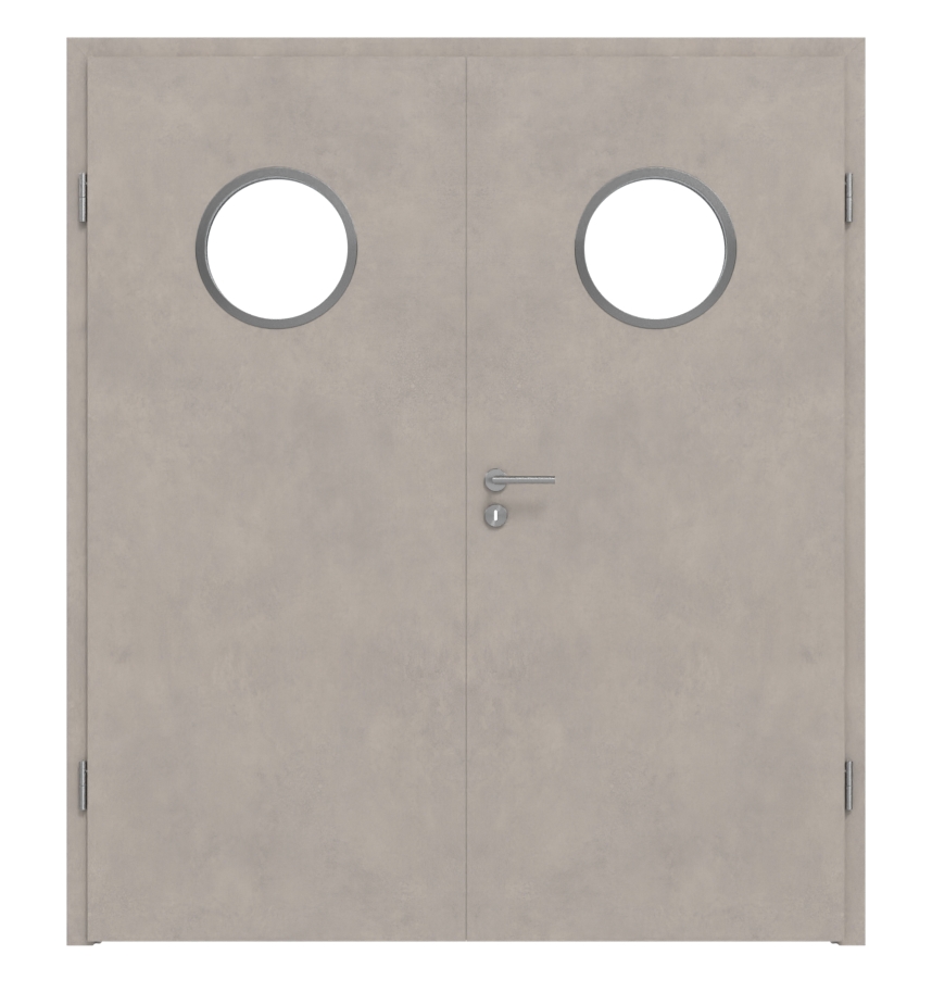Do komponentów, z których wykonane są oba skrzydła drzwi, należą rdzeniowe wzmocnienie oraz płyta wierzchnia o grubości 3 mm. Trójczęściowe zawiasy niezawodnie łączą oba skrzydła drzwi i zawartą ościeżnicę. Standardowo dostarczane są uchwyty zawiasów, zasuwa i uszczelka ościeżnicy.