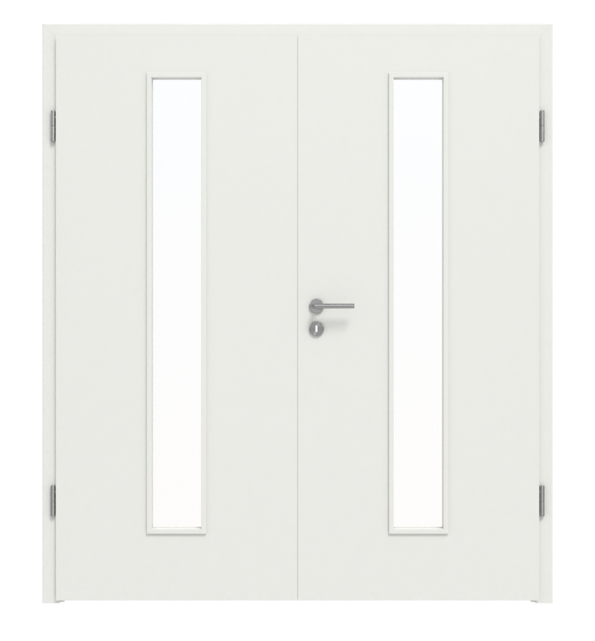 WESTAG drzwi dwuskrzydłowe sira biały (podobny do RAL 9003) WestaLack Soft z przeszkleniem LA-1 na środku w zestawie z ościeżnicą