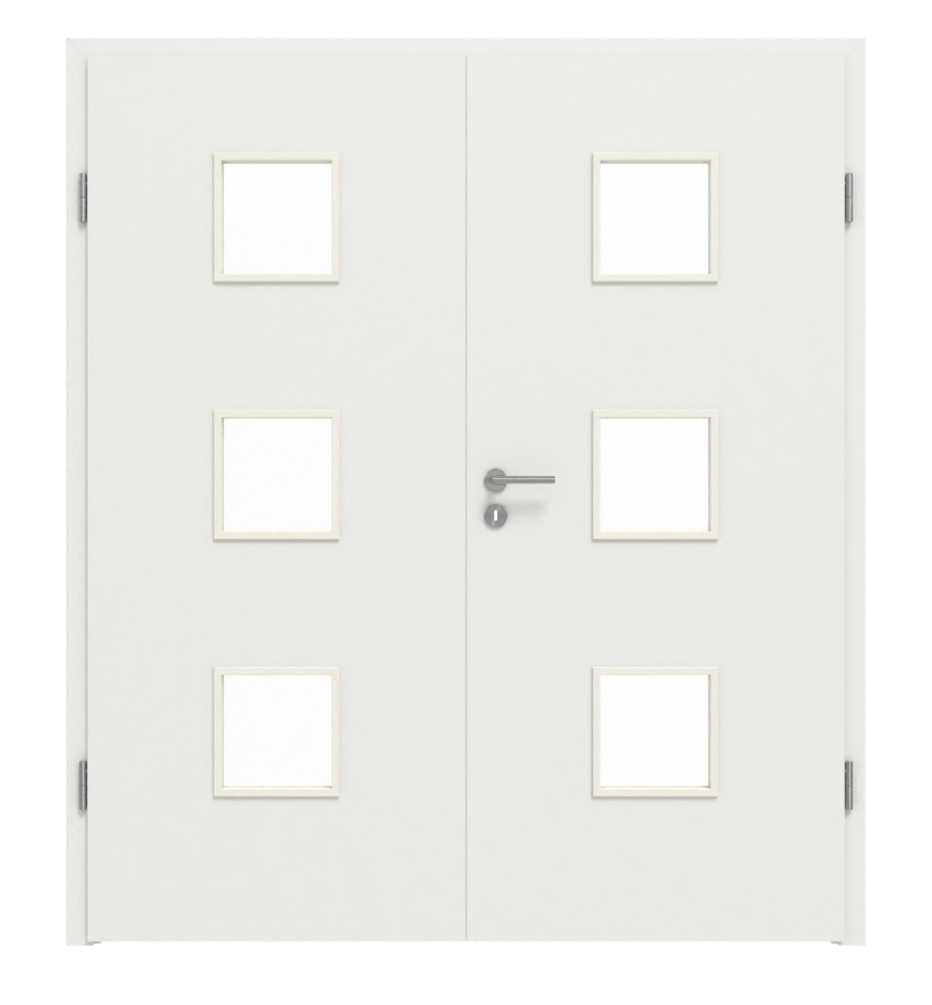 WESTAG drzwi dwuskrzydłowe sira biały (podobny do RAL 9003) WestaLack Soft z przeszkleniem LA-3 z ościeżnicą