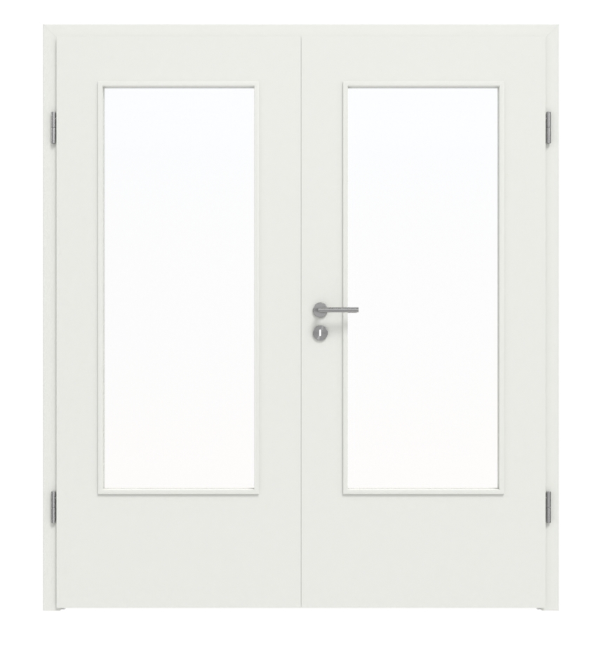 WESTAG drzwi dwuskrzydłowe sira biały (podobny do RAL 9003) WestaLack Soft z wycięciem na szybę LA-DIN z ościeżnicą