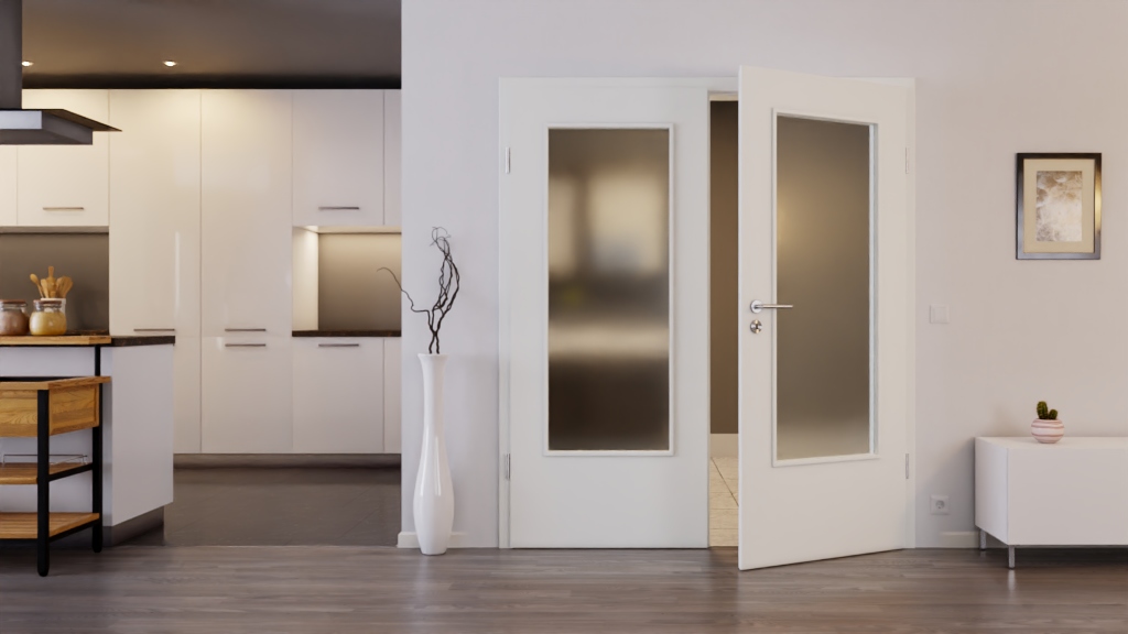Lakierowane drzwi wewnętrzne LA-DIN w kolorze sira biały dla większej przestronności w Twoich wnętrzach.