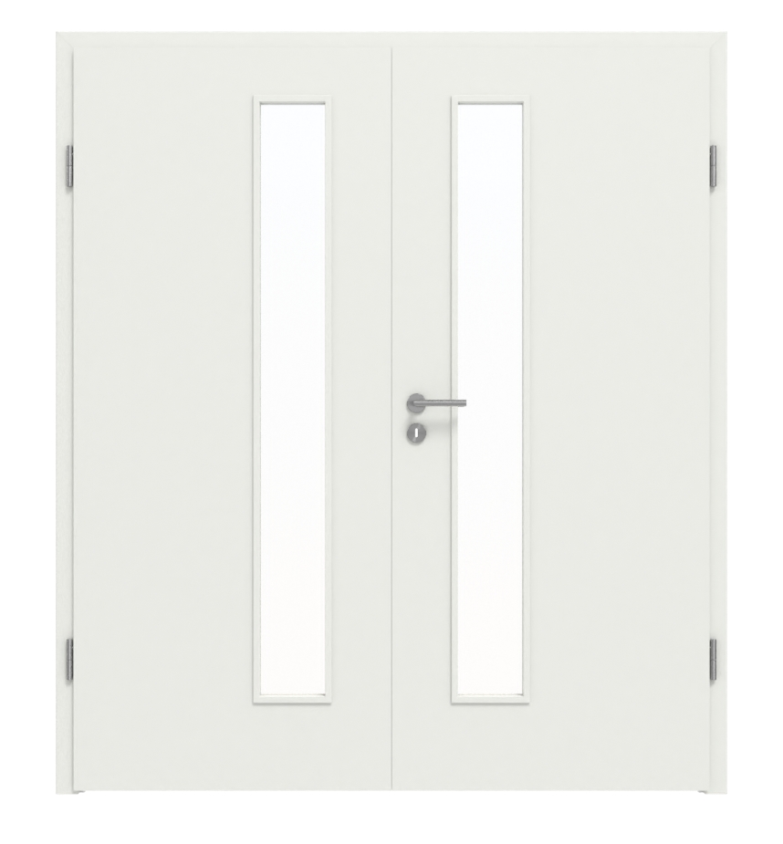 WESTAG 2-skrzydłowe sira biały (podobny do RAL 9003) WestaLack Soft z przeszkleniem LA-1D od strony zamka z ościeżnicą