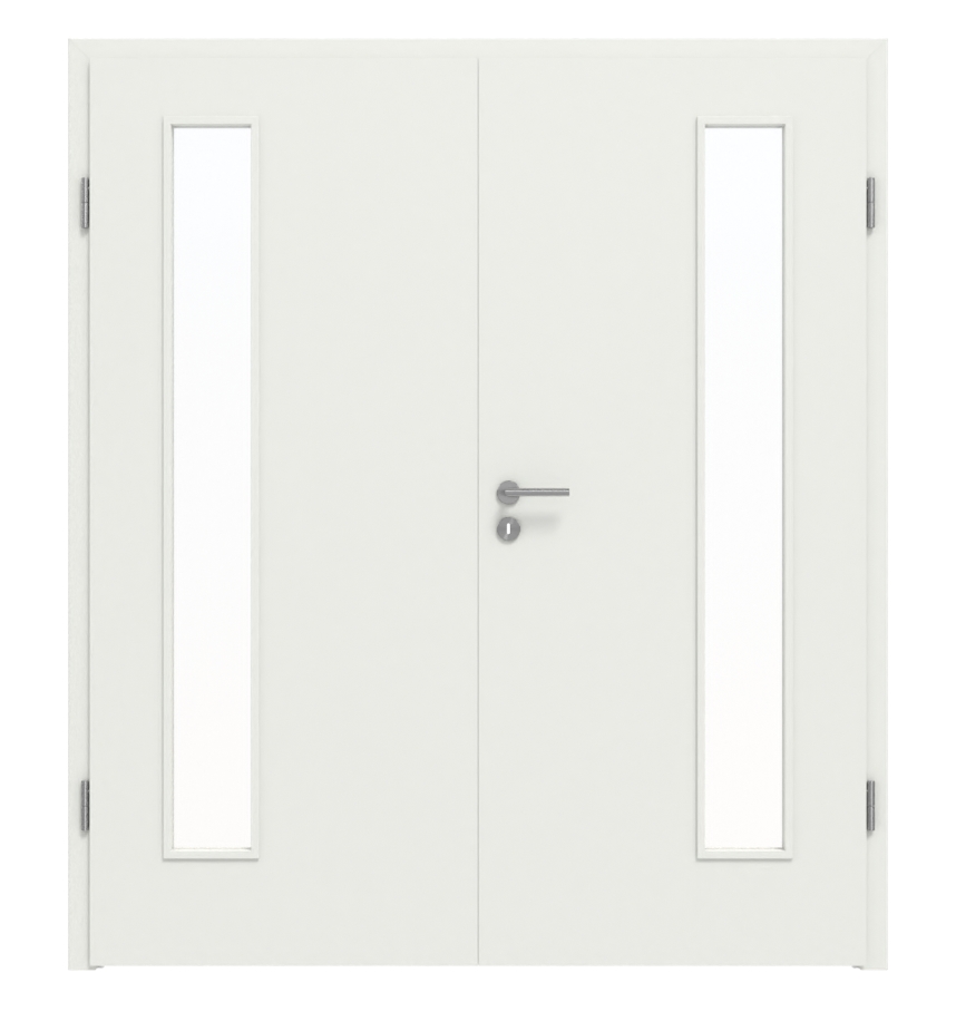 WESTAG drzwi dwuskrzydłowe sira biały (podobny do RAL 9003) WestaLack Soft z przeszkleniem LA-1B po stronie zawiasów w tym ościeżnica