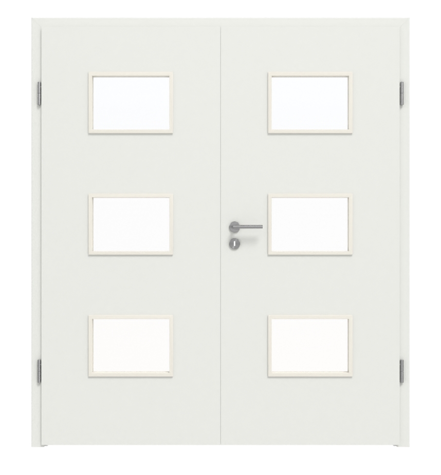 WESTAG drzwi dwuskrzydłowe sira biały (podobny do RAL 9003) WestaLack Soft z przeszkleniem LA-3Q z ościeżnicą