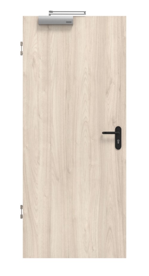 Specjalna wkładka nadaje skrzydłu drzwiowemu wysoką stabilność. Aby model zawsze stanowił niezawodną barierę przeciwko płomieniom i ciepłu, wyposażony jest w zamknięcie górne. Zamek cylindryczny i zestaw klamek przeciwpożarowych są częścią dostawy.