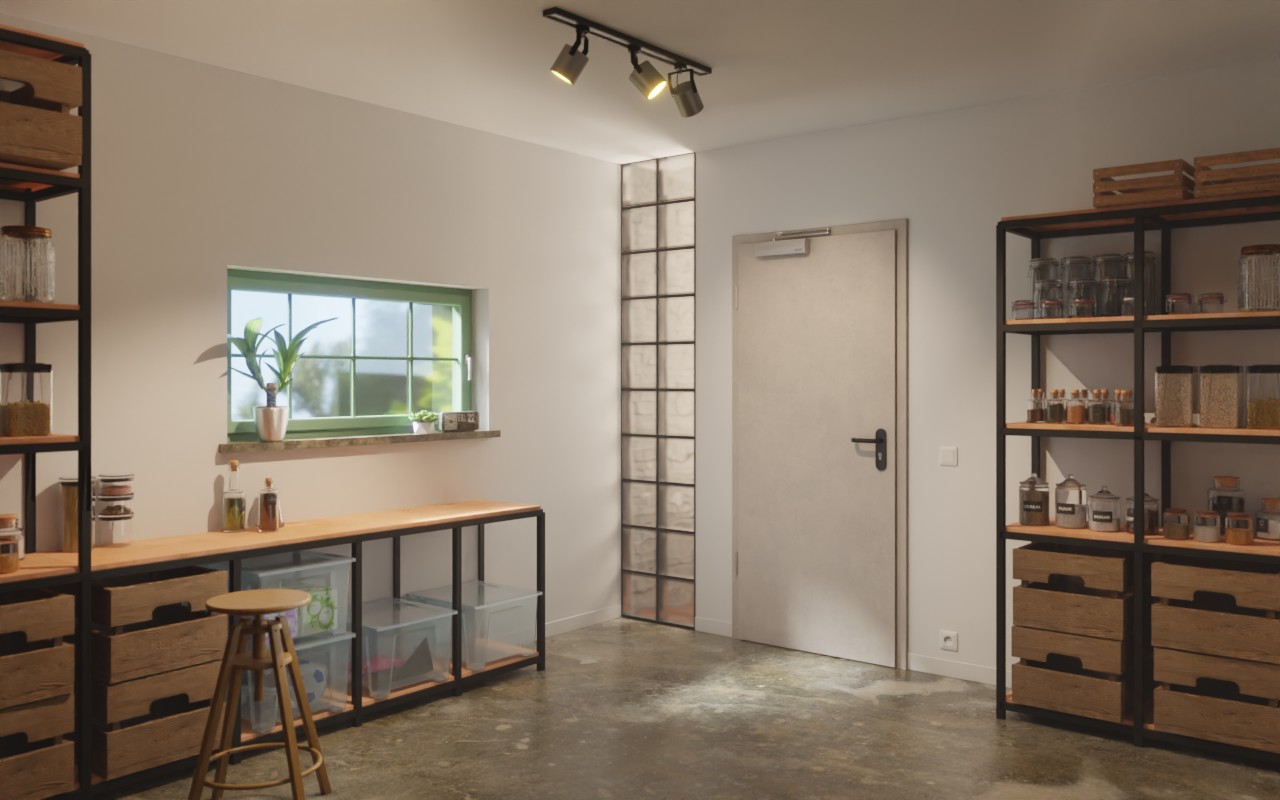 W skrzydle drzwi znajduje się specjalny wkład, który nadaje modelowi dużą stabilność. Aby model w razie potrzeby pozostał w zamkniętej pozycji, wyposażony jest w zamykacz górny. Zamek cylindryczny i zestaw klamek przeciwpożarowych są częścią dostawy.