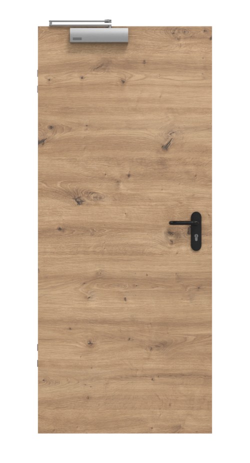 Specjalna wkładka nadaje skrzydłu drzwi wysoką stabilność. Aby model zawsze stanowił niezawodną barierę przeciwko płomieniom i ciepłu, wyposażony jest w zamknięcie górne drzwi. Zestaw klamek przeciwpożarowych oraz zamek cylindryczny dopełniają zakres dostawy.