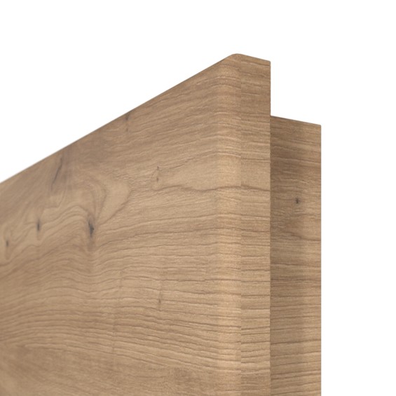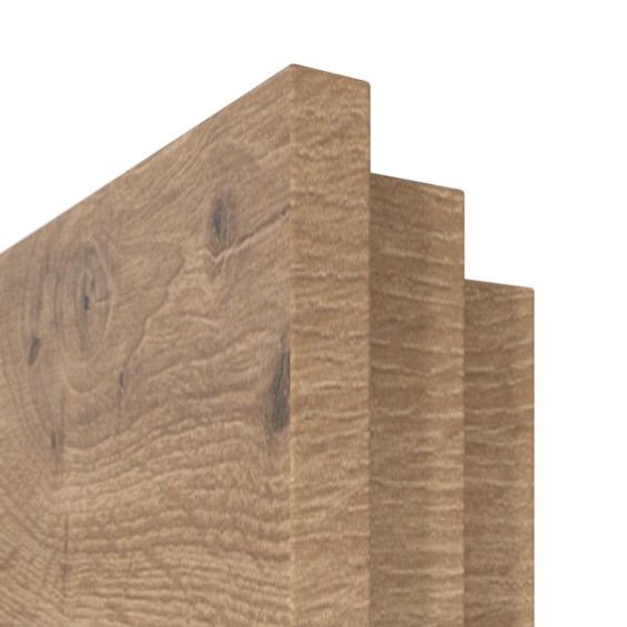 Poziome linie rocznych słojów i sęki są widoczne na brązowej dekoracji drewna. Aby warstwa CPL długo zachowała swój piękny wygląd, jest odporna na zarysowania i ścieranie.