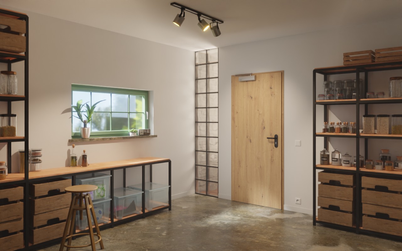 Solidne drzwi przeciwpożarowe z ogniotrwałym zestawem klamek:
