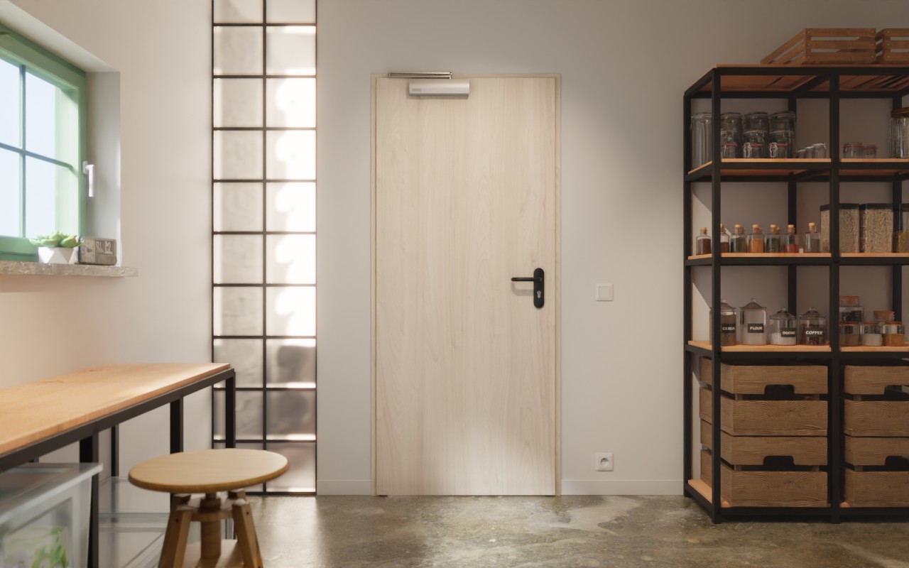 W skrzydle drzwi znajduje się specjalny wkład, który nadaje modelowi dużą stabilność. Aby model w razie potrzeby pozostał w zamkniętej pozycji, wyposażony jest w górny mechanizm zamykający. W skład dostawy wchodzi odpowiednia zestaw klamek przeciwpożarowych oraz zamek cylindryczny.