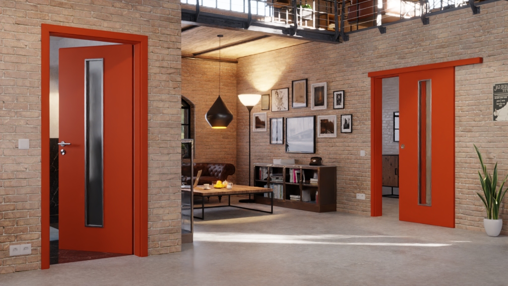• Zakres dostawy: Skrzydło drzwiowe, muszla drzwi przesuwanych, rowek prowadzący w podłodze