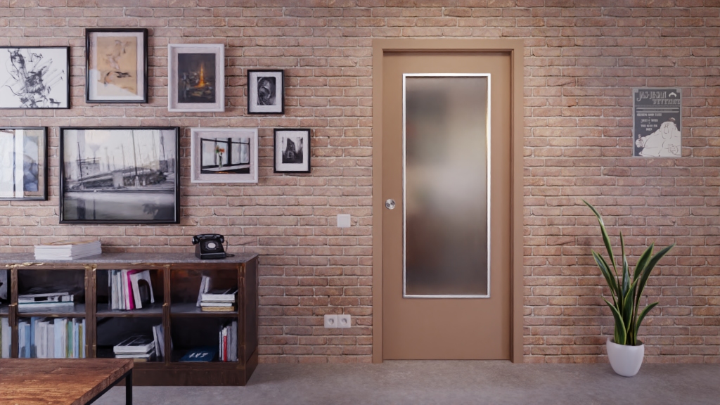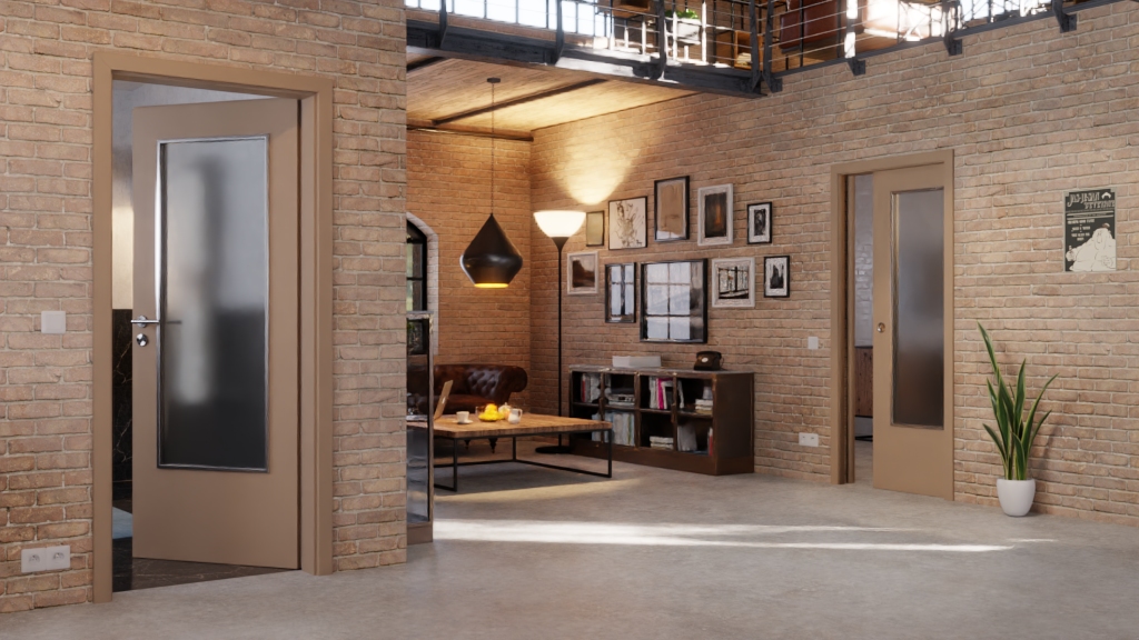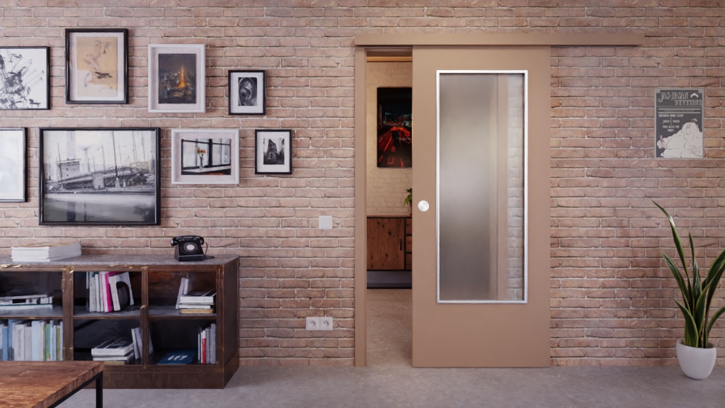 • Drzwi przesuwne w kolorze Castoro Ottawa z przeszkleniem LA-DIN