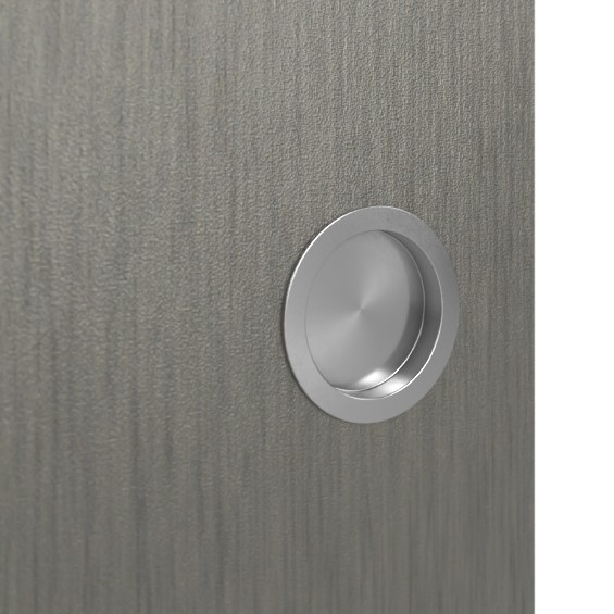 • W komplecie okrągły uchwyt wpuszczany muszlowy ze stali szlachetnej