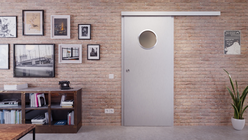 Poręczne drzwi przesuwne LA bulaj z matową powierzchnią w kolorze Argento Dukat