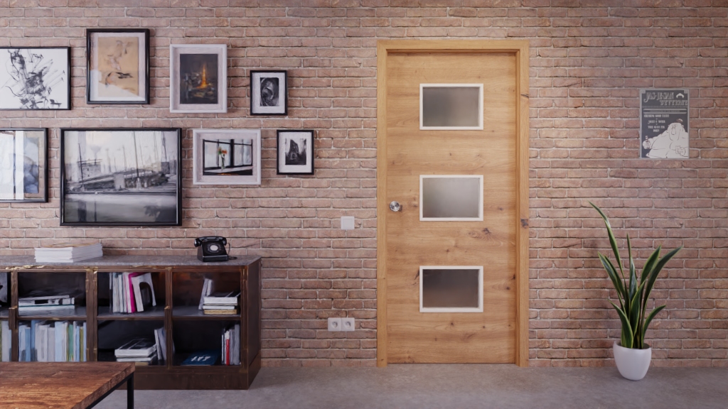Skrzydło drzwi jest odporne na codzienne uderzenia, wyposażone w 3 mm grubą okładzinę oraz rdzeń z płyty wiórowej. Wygodne użytkowanie zapewniają dołączona uchwyt oraz prowadnica podłogowa.