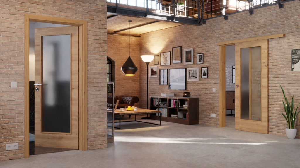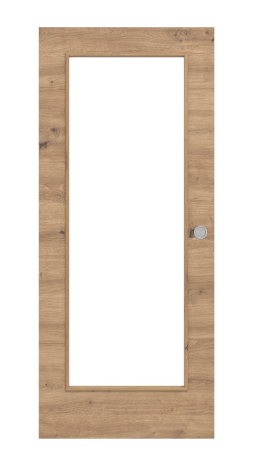 Skrzydło drzwi jest zabezpieczone przed codziennymi uderzeniami, z 3 mm grubą płytą wierzchnią i rdzeniem z płyty wiórowej. W standardowym wyposażeniu znajduje się uchwyt oraz prowadnica podłogowa.