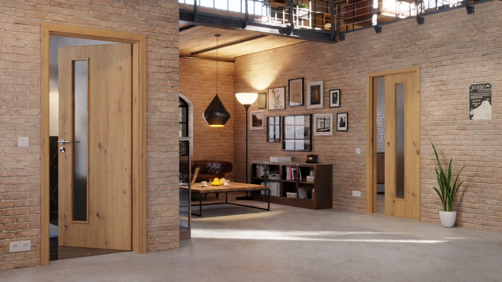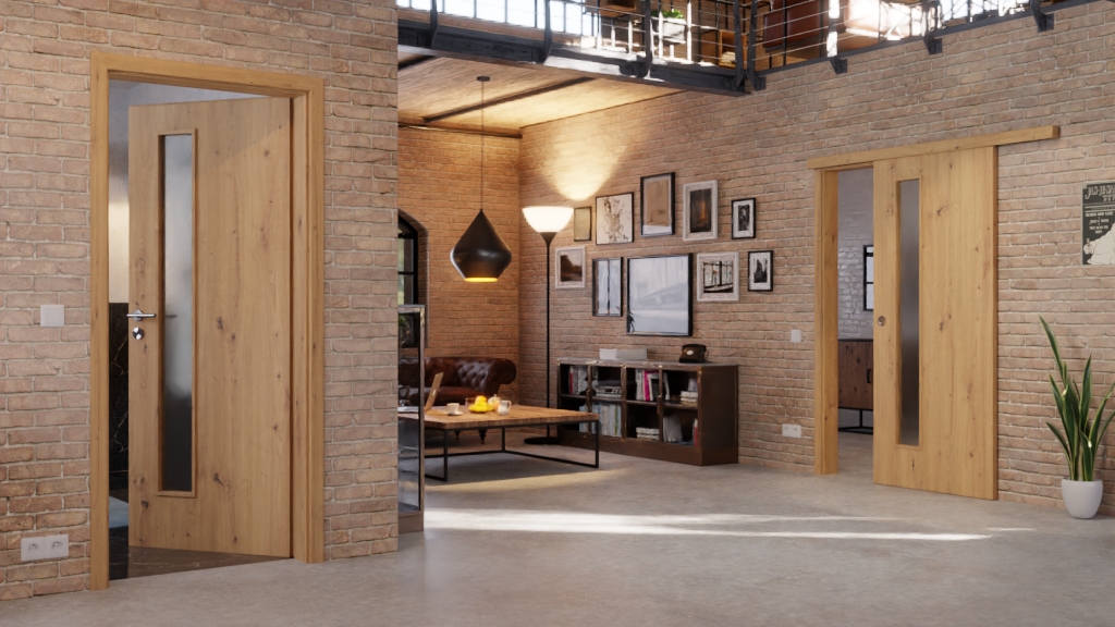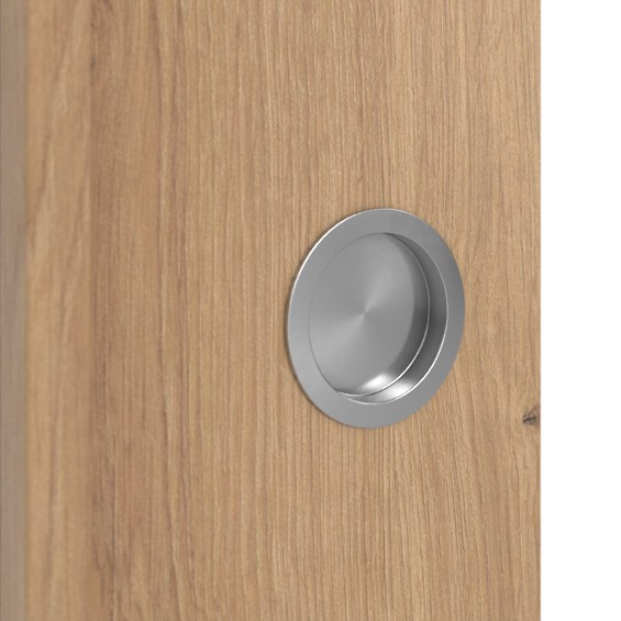Wytrzymały model drzwi przesuwnych z prowadnicą podłogową i okrągłym uchwytem: