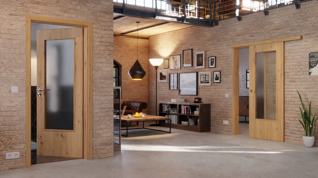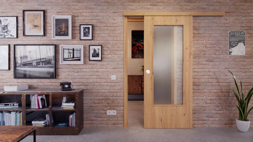 Wytrzymały model drzwi przesuwnych z prowadnicą podłogową i uchwytem muszelkowym: