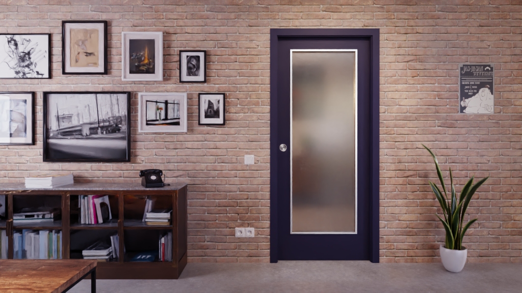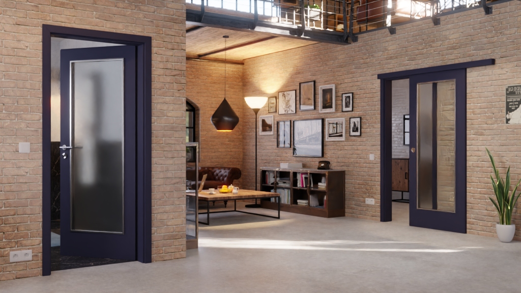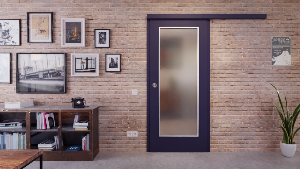 Poręczne drzwi przesuwne LA-1000 z matową powłoką w kolorze Blu Fes