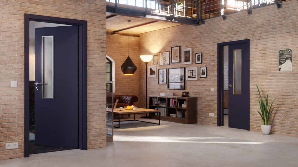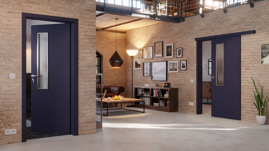 Komfortowe drzwi przesuwne LA-18-21,5 z matową powłoką Fenix w kolorze Blu Fes