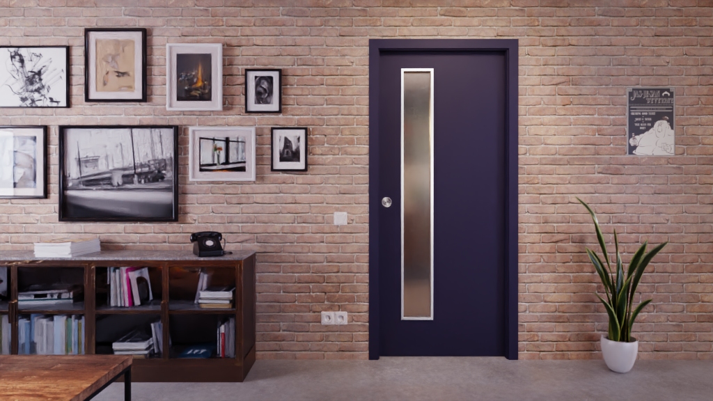 • Wąskie przeszklenie w skrzydle drzwiowym