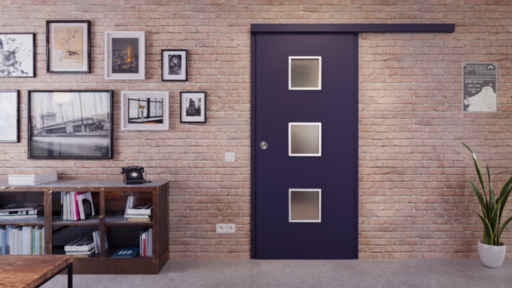 Poręczne drzwi przesuwne LA-3 z matową powierzchnią w FX 0754 NTM Blu Fes