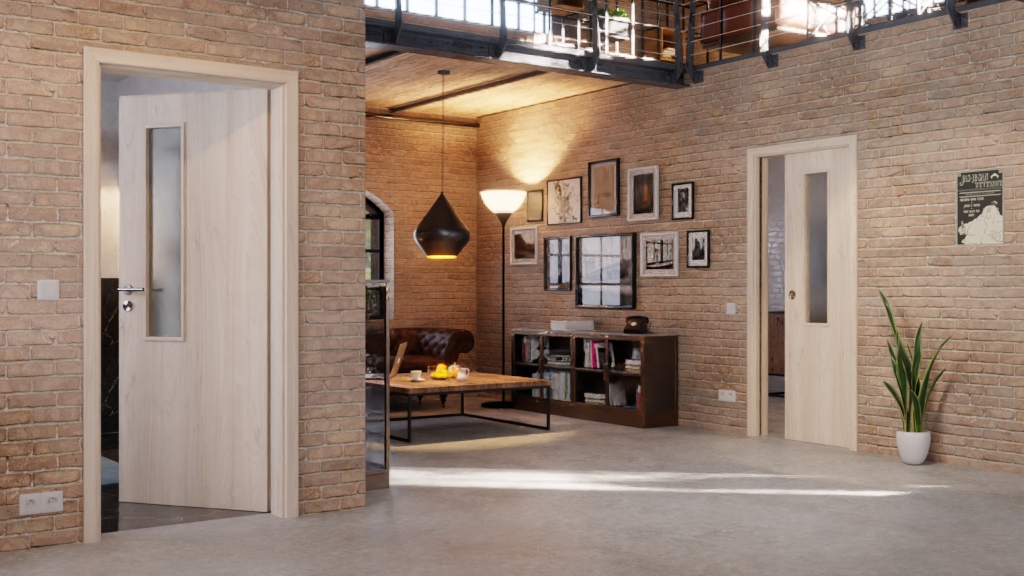 Skrzydło drzwiowe wewnątrz ma płytę wiórową. Zakończenie stanowi 3 mm gruba płyta wierzchnia. Aby codzienne użytkowanie było komfortowe, w standardowym wyposażeniu znajdują się rowek prowadzący i uchwyt.