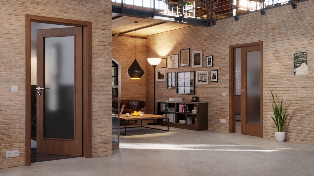 Ciemnobrązowy dekor orzecha tworzy ciepłą atmosferę. Powierzchnia CPL jest odporna na rozpuszczalniki, ścieranie i zarysowania. Duże przeszklenie zapewnia dużo światła w pomieszczeniach.