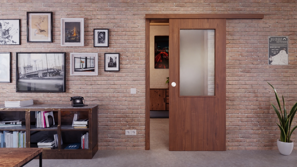 Trwałe drzwi przesuwne z 3 mm grubą płytą wierzchnią oraz uchwytem: