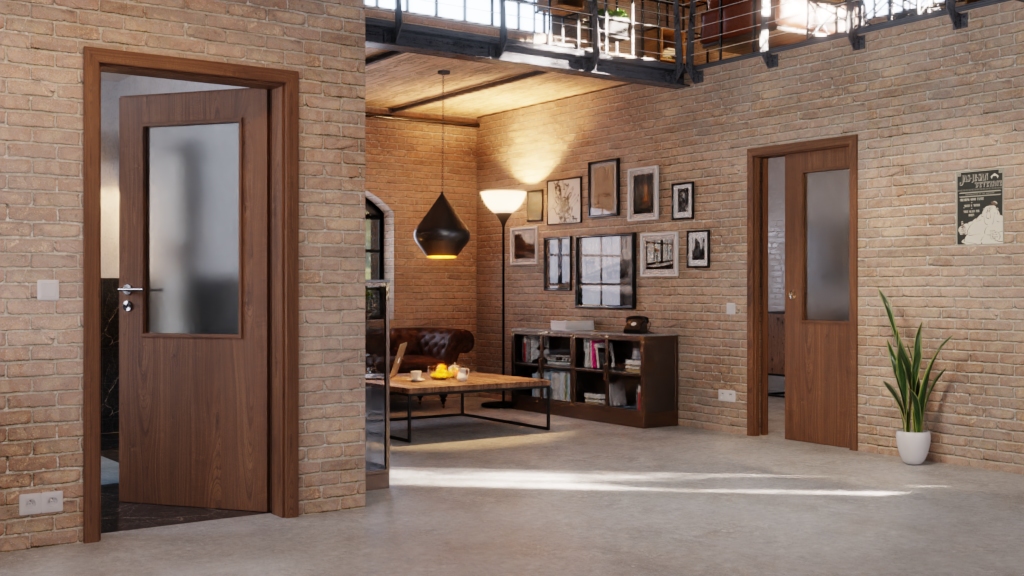 Skrzydło drzwi jest zabezpieczone przed codziennymi uderzeniami, z 3 mm grubą okładziną i rdzeniem z płyty wiórowej. Dołączona muszla chwytowa oraz rowek prowadzący zwiększają komfort użytkowania.