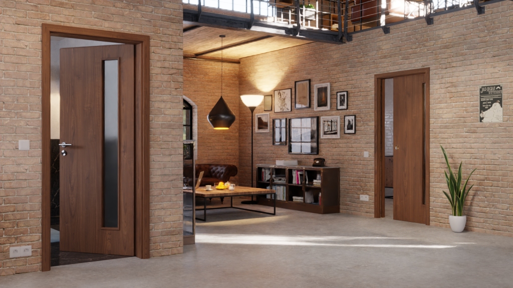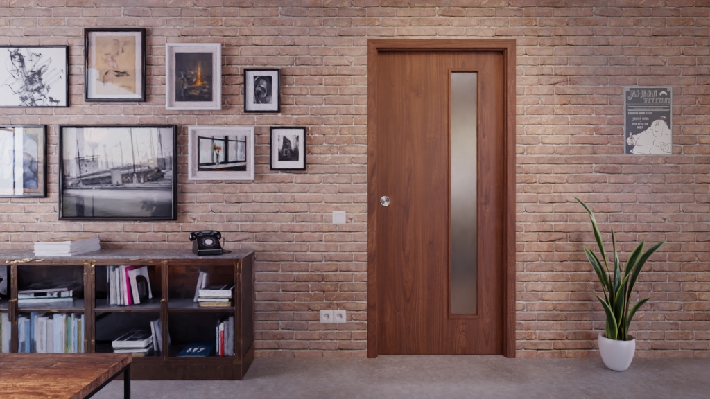 Odporny na zarysowania i ścieranie dekor drewniany ma ciemno-brązowy odcień. Wysoka odporność na obciążenia mechaniczne, rozpuszczalniki i promieniowanie UV zapewnia długotrwały charakter. Po stronie zawiasów znajduje się wąski otwór świetlny.