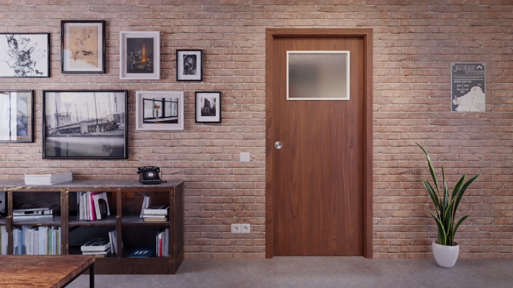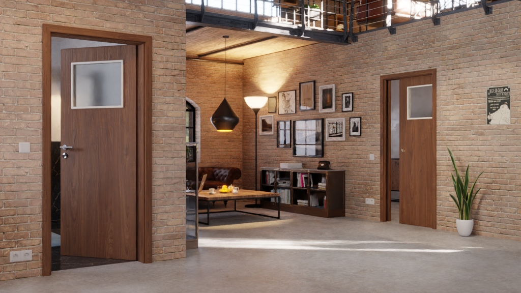 Skrzydło drzwi jest odporne na codzienne uderzenia, wyposażone w 3 mm grubą warstwę wierzchnią oraz rdzeń z płyty wiórowej. W standardowym wyposażeniu znajduje się uchwyt oraz prowadnica podłogowa.