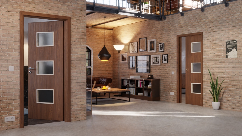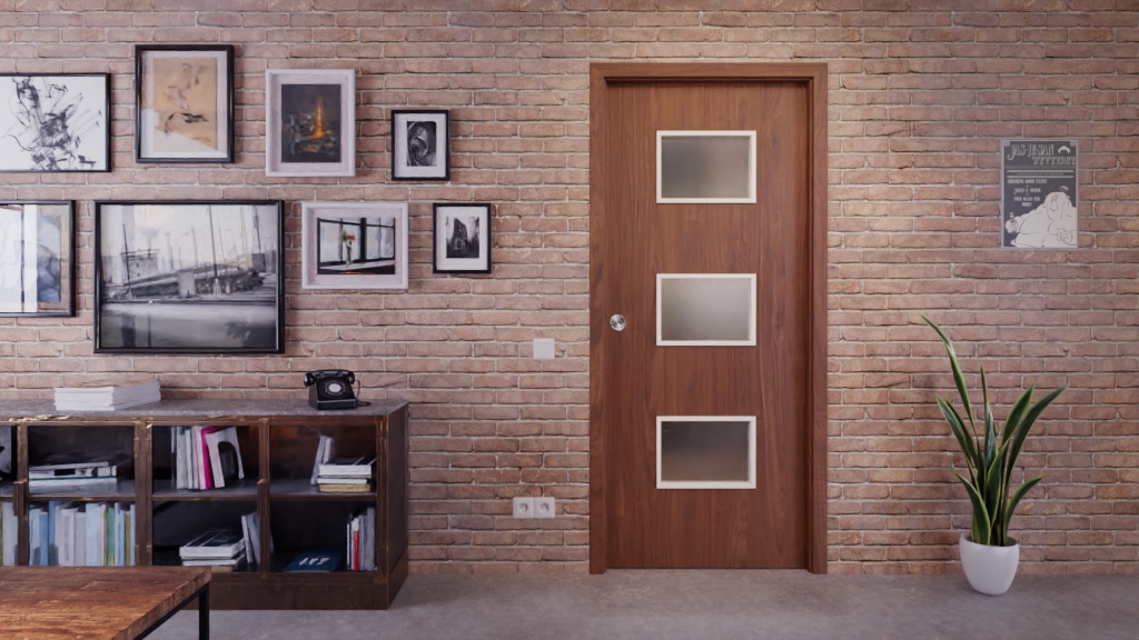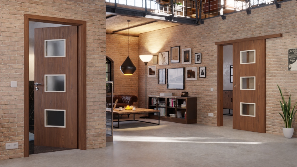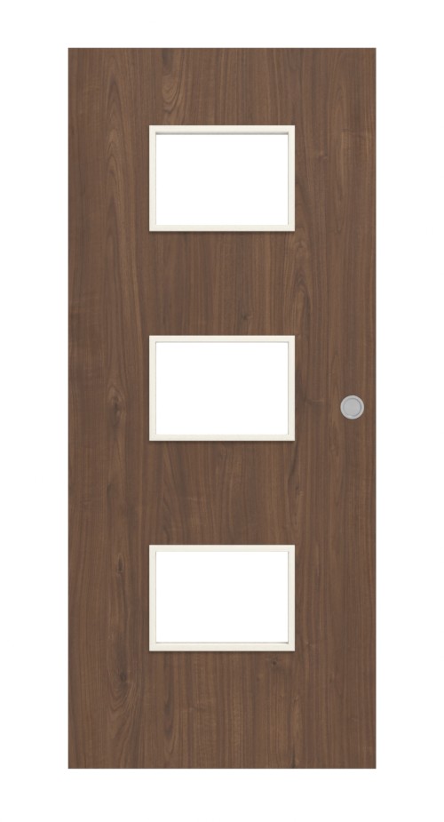 W rdzeniu znajduje się płyta wiórowa, a 3 mm grubości płyta wierzchnia zapewnia solidne wykończenie. Uchwyt oraz rowek prowadzący, w którym skrzydło drzwiowe płynnie się porusza, są częścią standardowego wyposażenia.