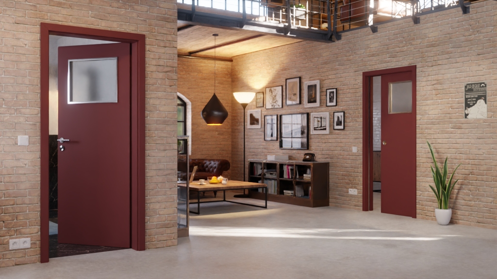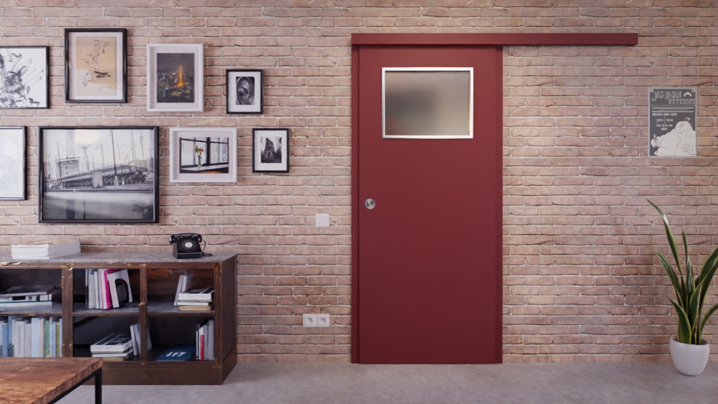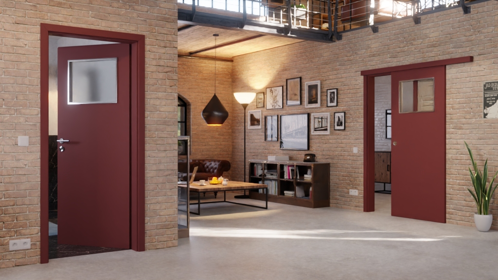 Komfortowe drzwi przesuwne LA-40 z matową powłoką Fenix w kolorze Rosso Jaipur