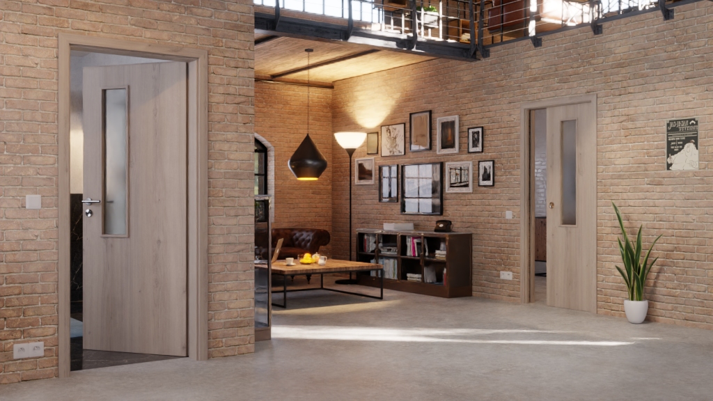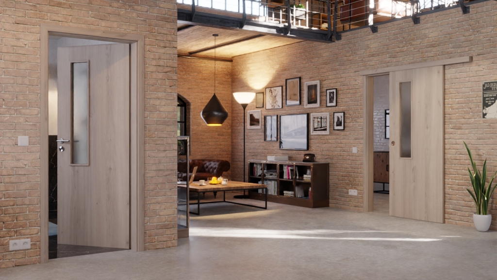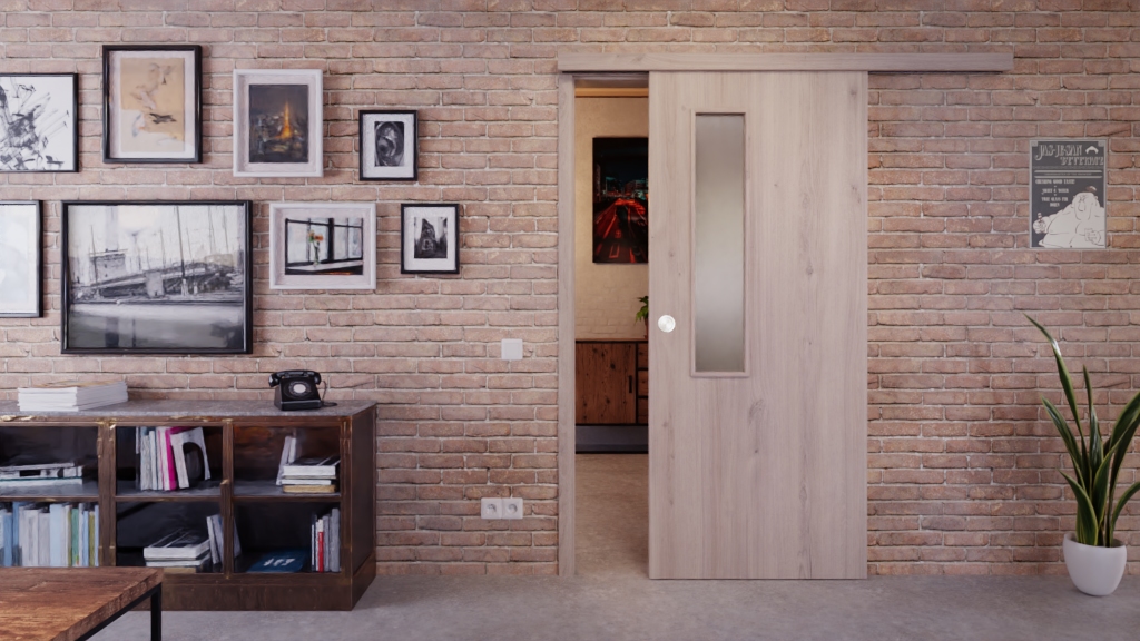 Sprawdzona drzwi przesuwne z rurkowymi wspornikami i dopasowaną klamką: