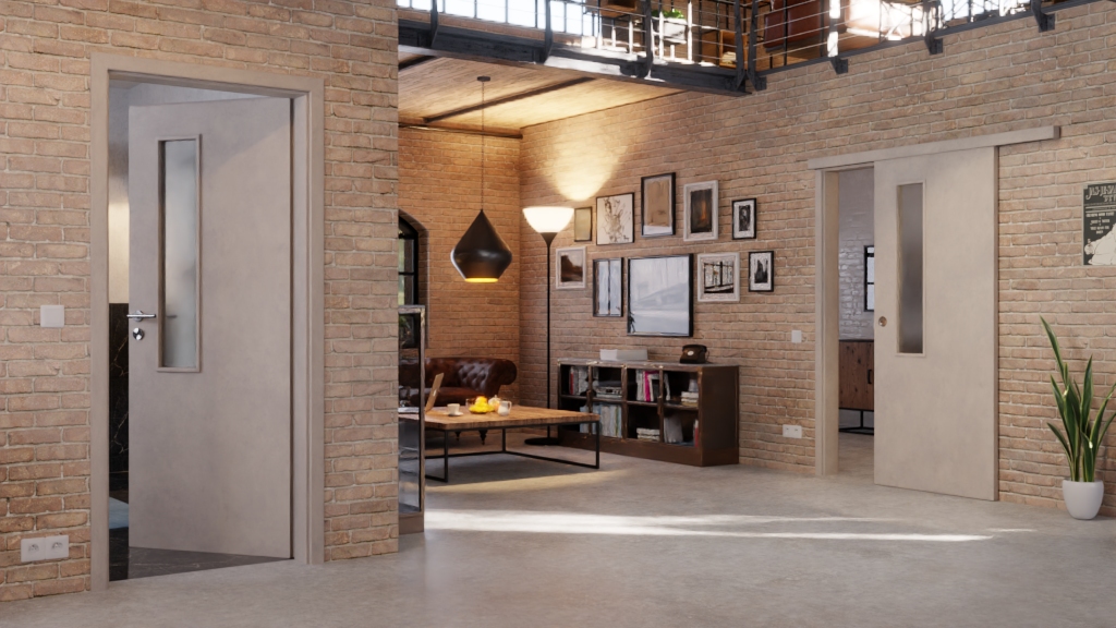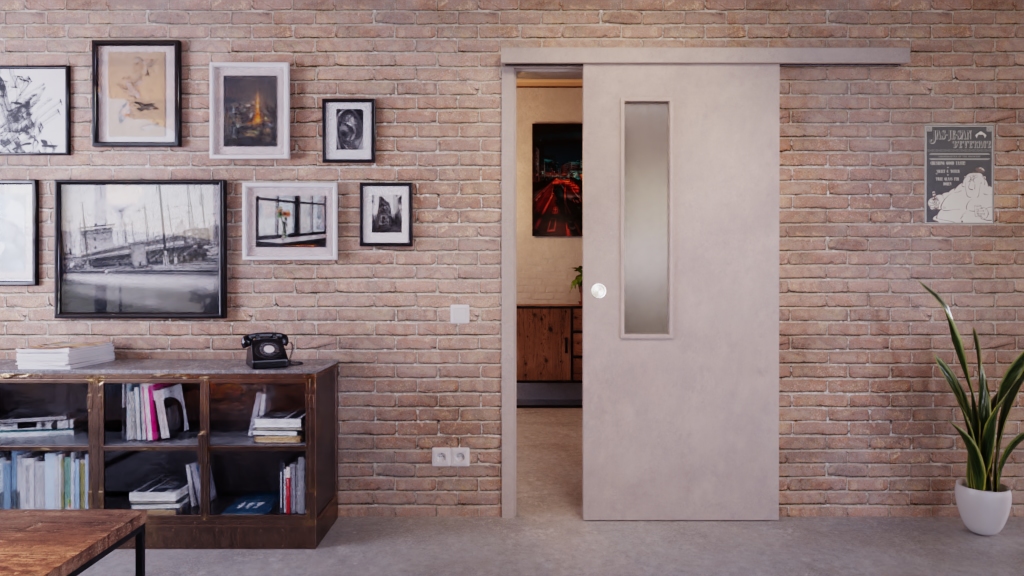 Stylowy oszczędzacz miejsca: Drzwi przesuwne w kolorze Semento BN 434 z serii Portalit od Westag zapewniają więcej swobody ruchu w Twoim domu.