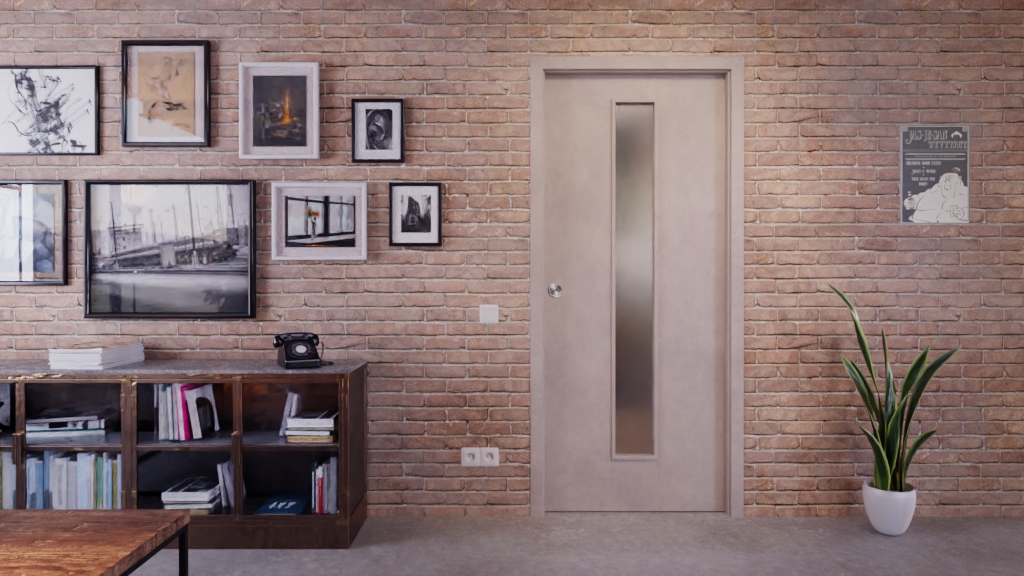 Praktyczna okleina drewniana ma szary odcień, co pozwala na dopasowanie do różnych aranżacji wnętrz. Dzięki stabilnym właściwościom nie musisz martwić się o zarysowania i ścieranie. W środku skrzydła drzwi znajduje się wąski przesmyk świetlny.
