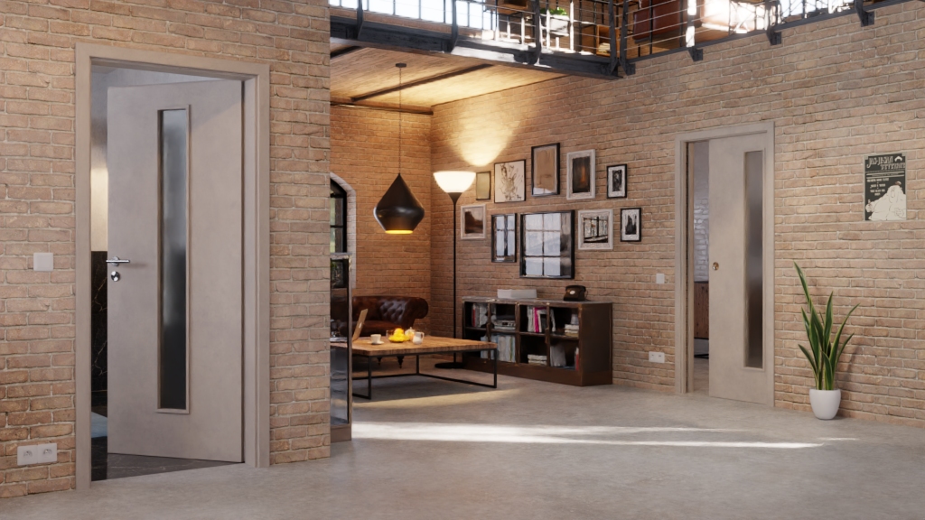 Stylowy oszczędzacz miejsca: Drzwi przesuwne w kolorze Semento BN 434 z serii Portalit od Westag zapewniają więcej swobody ruchu w Twoim domu.