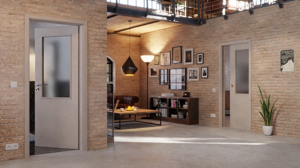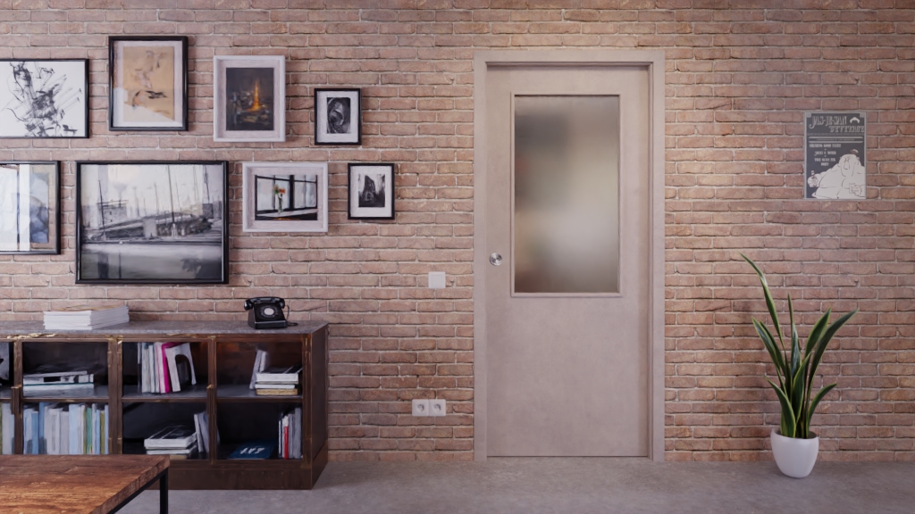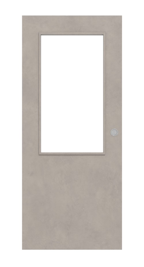 Odporny na zarysowania i ścieranie dekor z drewna ma szary odcień. Powszechne środki czyszczące i światło UV nie mają wpływu na warstwę CPL. W górnej części skrzydła drzwi znajduje się wycięcie na światło.
