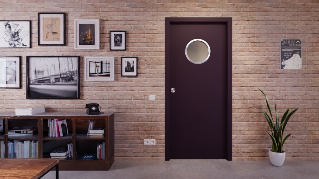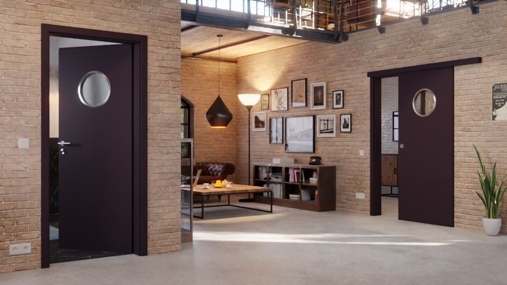 • Okrągłe przeszklenie w górnej jednej trzeciej skrzydła drzwiowego