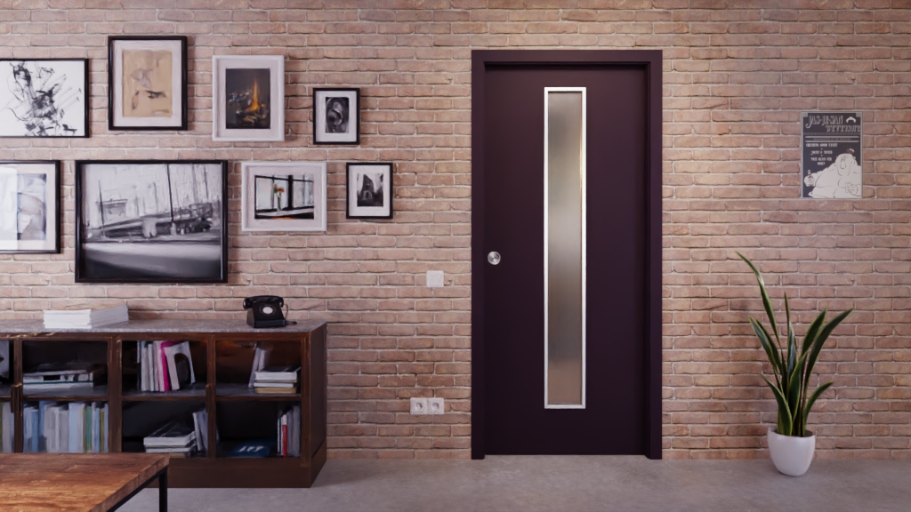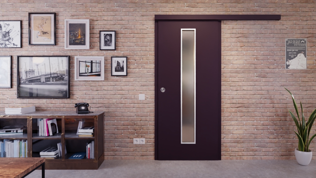 Oszczędzające miejsce drzwi przesuwne LA-1 na środku z matową powłoką w kolorze Viola Orissa