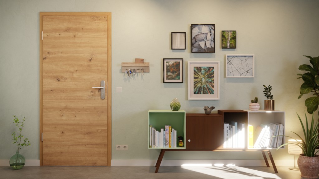 Wypełnienie rdzeniowe stanowi stabilną podstawę, podczas gdy 3 mm grubości płyta wierzchnia zapewnia solidne wykończenie drzwi mieszkalnych, które otrzymały klasę klimatyczną 2. Większą izolację akustyczną gwarantuje obniżana uszczelka podłogowa, która obok zamka profilowego i trójczęściowych zawiasów wchodzi w skład dostawy.