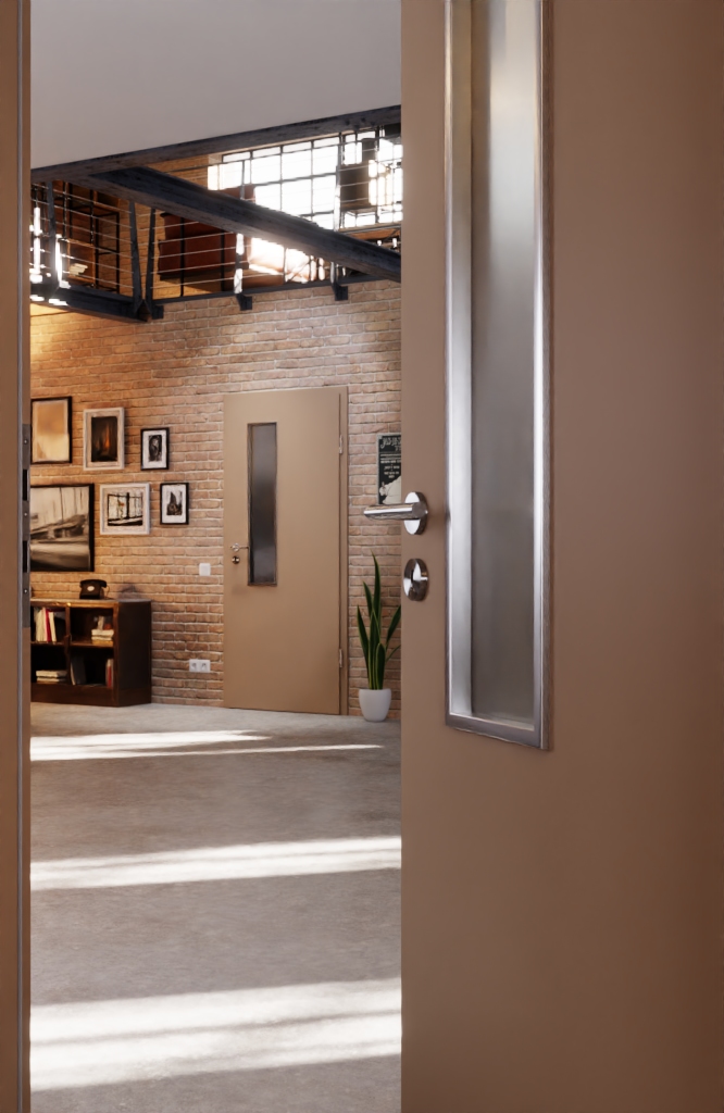 • Standardowe wykonanie kasety zamka: Zamek pokojowy BB klasa 1, trzpień 55 mm, czoło w kolorze srebrnym