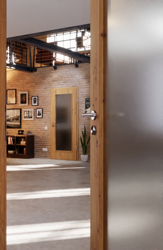 Stylowe drzwi pokojowe z dwuczęściowymi zawiasami i odpornym na UV wykończeniem CPL: