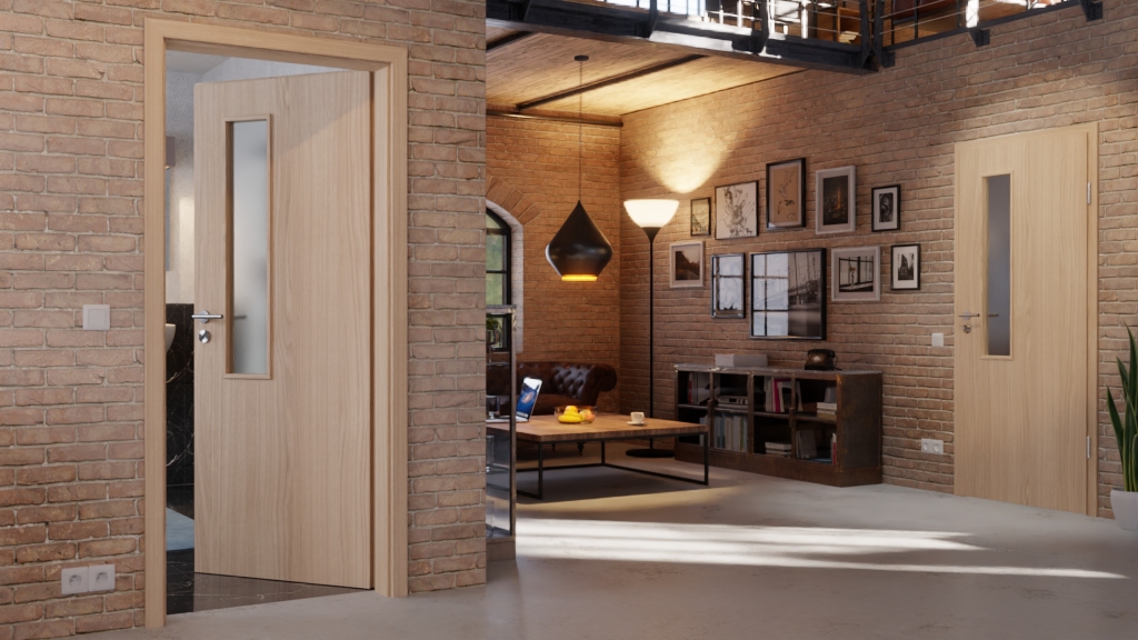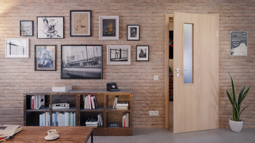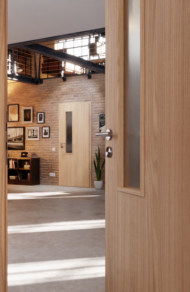 Ładna wewnętrzna drzwi z kanciastymi krawędziami i łatwą w pielęgnacji powłoką CPL: