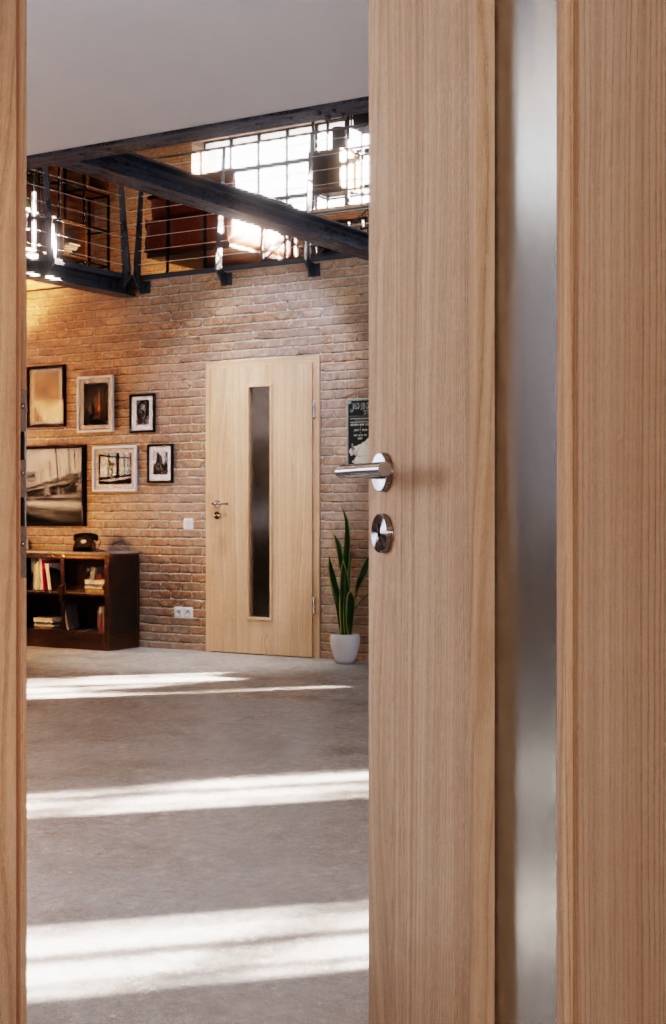 Elegancka drzwi wewnętrzne z kanciastymi krawędziami i odporną na ścieranie powierzchnią CPL: