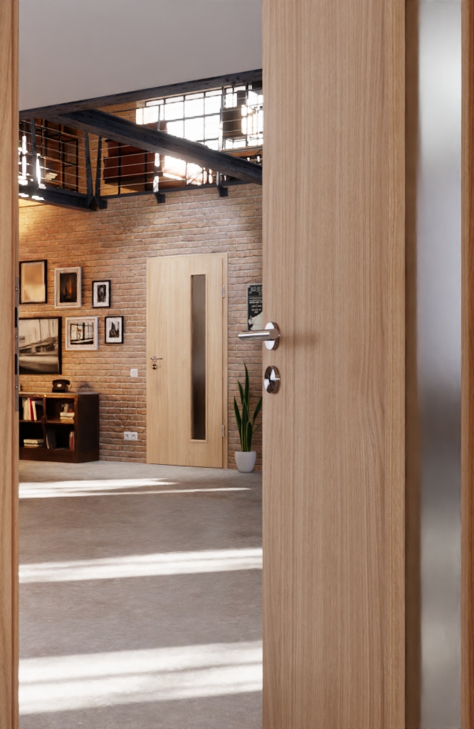 Stylowe drzwi pokojowe z dwuczęściowymi zawiasami i odpornym na UV wykończeniem CPL: