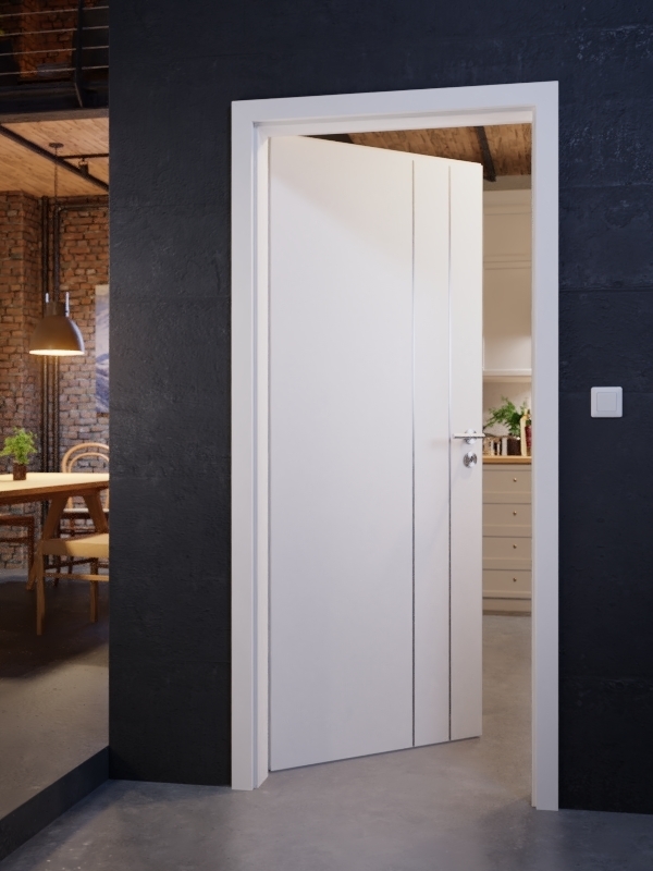 Drzwi designowe Lineo w RAL 9016 od Westag gwarantują maksymalny efekt przestrzenny z prostymi detalami: