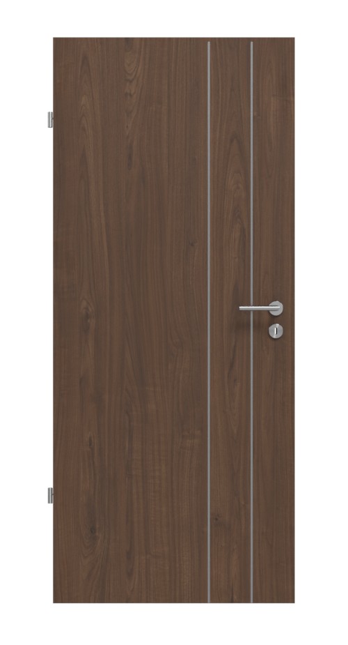 Ciężki dekor orzechowy wygląda bardzo autentycznie dzięki wyraźnym sękom i odcieniom. Oprócz odpornych na zarysowania i ścieranie właściwości, powłoka CPL charakteryzuje się łatwą pielęgnacją. Po stronie zamka model wyposażony jest w dwie listwy, co nadaje mu elegancki i nowoczesny wygląd.