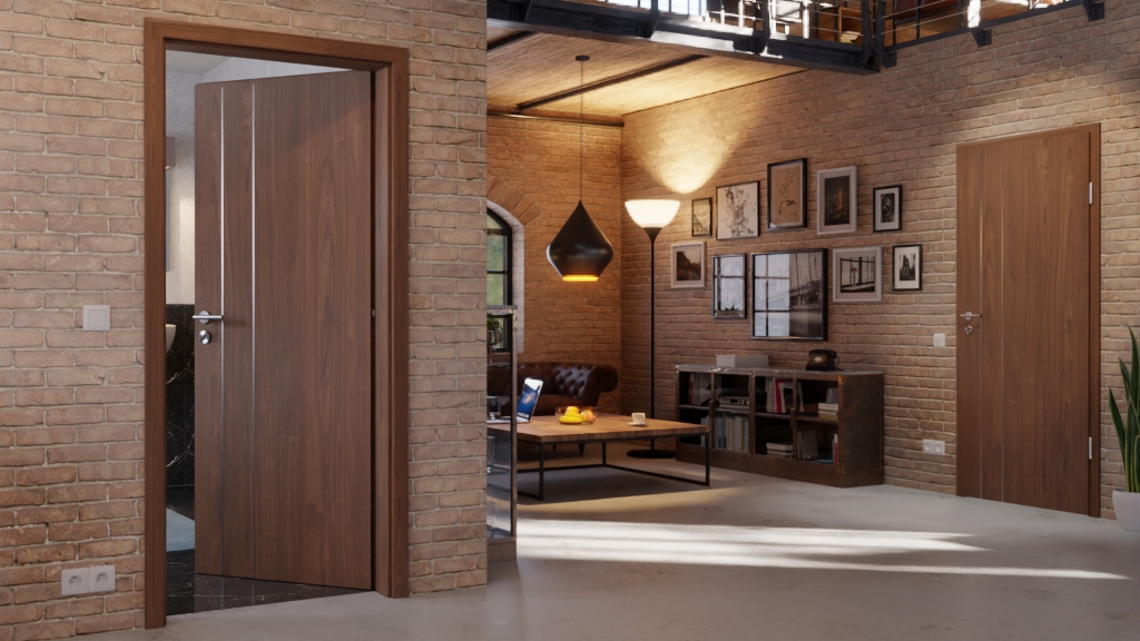 Ciepło i naturalność w Twoim domu: Wytrzymałe komponenty drzwi wewnętrznych w orzechu Trentino NU 717 z serii PortaLit od Westag obiecują długą żywotność.